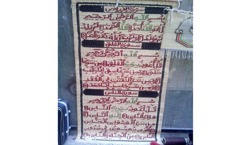 يد تغزل الآيات القرآنية على الحصير