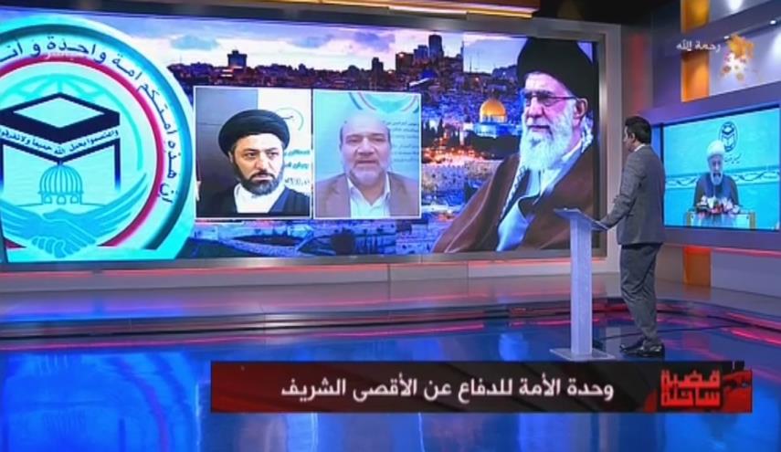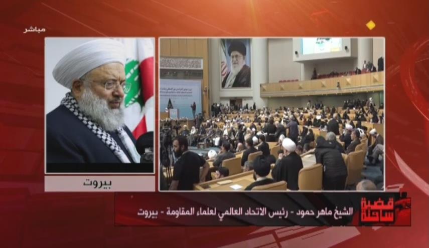بين ضيفنا من بيروت سماحة الشيخ ماهر حمّود رئيس الإتحاد العالمي لعلماء المقاومة انه ومنذ أن التقى بالإمام الخامنئي عرف بأن سماحته يهتم بالقضية الفلسطينية ويحث عليها مبينا ان قائد الثورة الإسلامية يمثل القيادة الإسلامية العالمية.