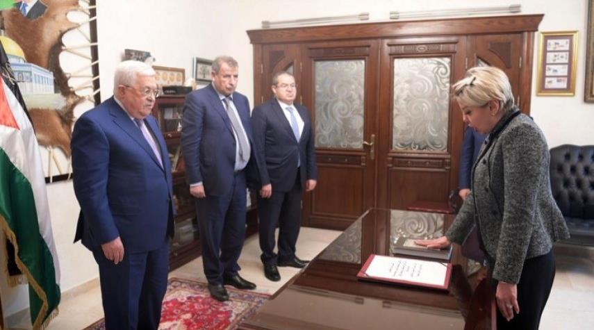 فلسطين المحتلة_الكوثر: أدت سلام الزواوي، اليمين القانونية، أمام رئيس السلطة الفلسطينية محمود عباس، سفيرة لفلسطين لدى الجمهورية الإسلامية الإيرانية.