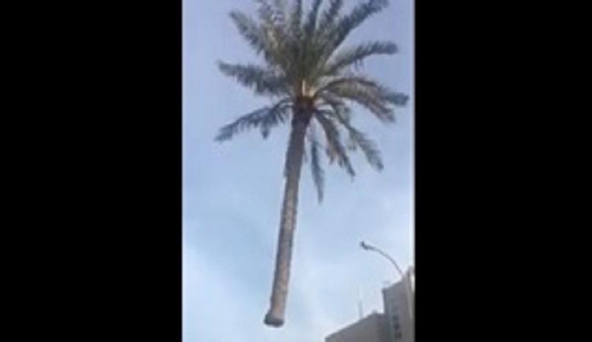شاهد..نخلة معلقة في الهواء تثير الحيرة على مواقع التواصل!