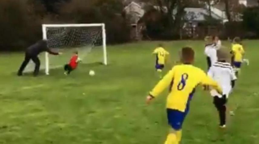 فيديو.. أب يدفع ابنه لصد الكرة يحقق ملايين المشاهدات!