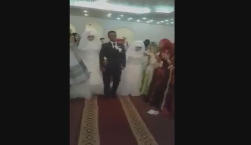 بالفيديو.. عريس عربي يتزوج فتاتين ويقيم لهما حفل زفاف واحد!