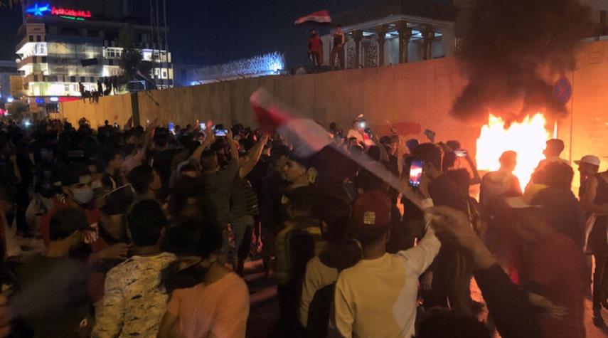 العراق _ الكوثر : اعلن المحتجّون في ساحة التربية وسط مدينة كربلاء المقدسة بالعراق، براءتهم من المجموعات المجهولة التي اعتدت على القنصلية الايرانية، أمس الاحد، مؤكدين ان اي جهة تخرج من فلكة ساحة التربية وهو المكان المخصص للتظاهر تحت اي عنوان لاتمثل المتظاهرين.