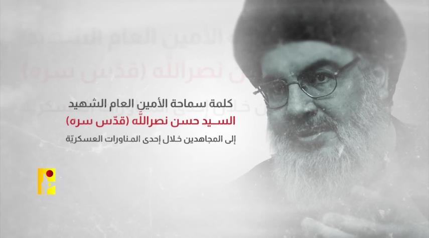 بثت قناة المنار اللبنانية كلمة مسجلة للأمين العام لحزب الله الشهيد السيد حسن نصر الله إلى المجاهدين خلال إحدى المناورات العسكرية
