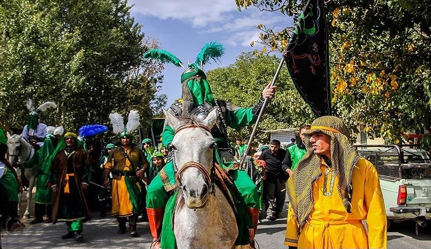 بالصور.. عرض رمزي لدخول قافلة الإمام الحسين إلى كربلاء في مدينة همدان