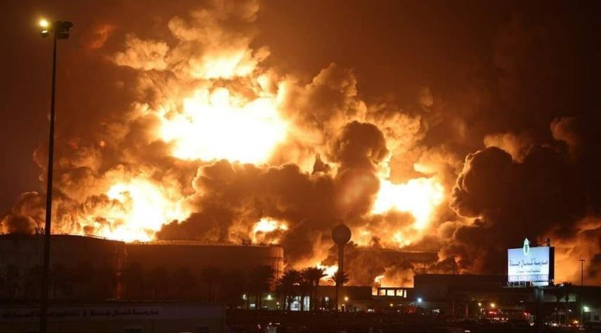 السعودية_الكوثر: مقاطع فيديو حصرية من حريق شركة أرامكو النفطية في جدة التي استهدفتها القوات المسلحة اليمنية.