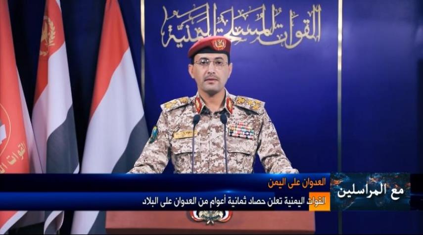 حصاد ثمانية اعوام من الصمود والمواجهة مع العدوان على اليمن أوجزه المتحدث الرسمي للقوات المسلحة اليمنية العميد يحيى سريع في مؤتمر صحفي في صنعاء.