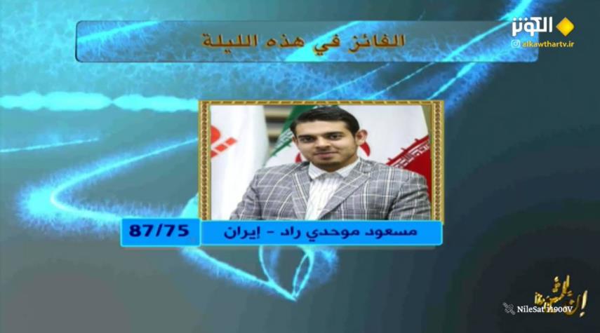 تلاوة قرآنية للمتسابق المشارك من ايران "بيمان صدفي همداني" حسب القرعة من سورة آل عمران المباركة في الليلة الحادية والعشرين من مسابقة "إن للمتقين مفازا" الدورة السادسة عشرة لشهر رمضان 2023.