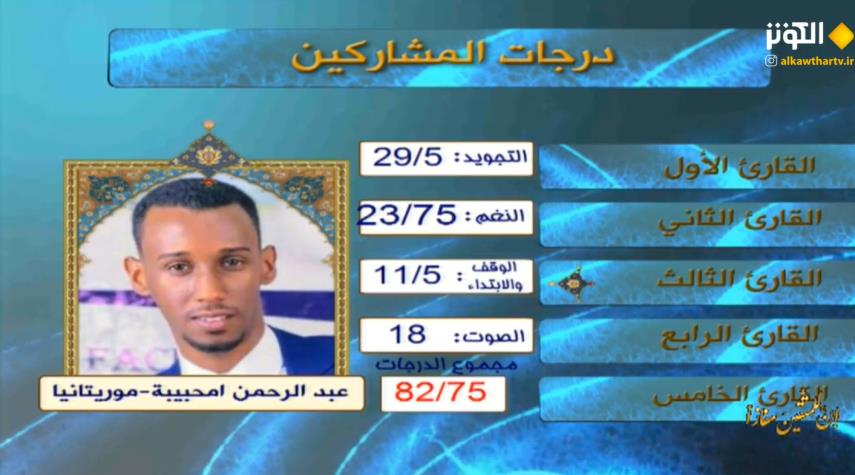 تلاوة قرآنية للمتسابق المشارك من موريتانيا"عبدالرحمن امحبيبة" حسب القرعة من سورة فصلت المباركة في الليلة الحادية والعشرين من مسابقة "إن للمتقين مفازا" الدورة السادسة عشرة لشهر رمضان 2023.
