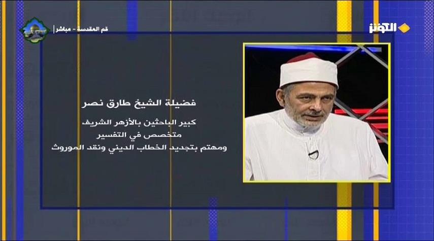 تحدث كبير الباحثيين الإسلاميين بالأزهر الشريف والمتخصص بالتفسير فضيلة الشيخ طارق نصر ضمن مشاركته في برنامج "الوحه الآخر " حول القدس محور وحدة الامة