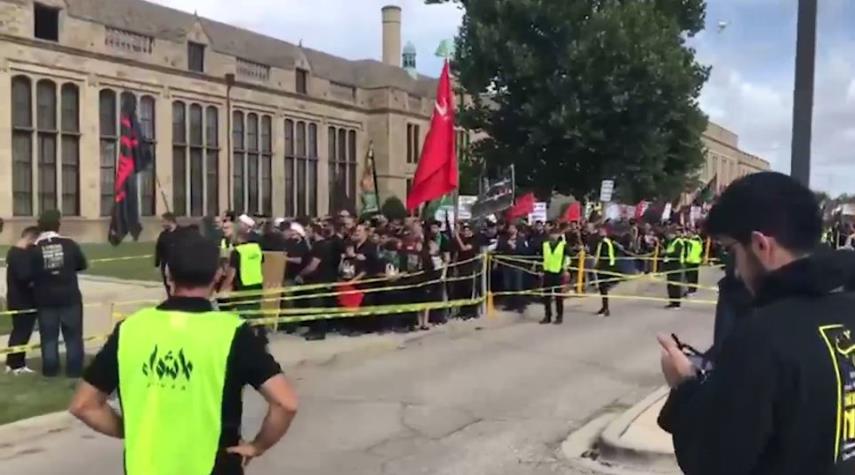 الأميركيتان - الكوثر: خرج حشد من المسلمين في مسيرة العاشر من محرم في ولاية ميشيغن الأمريكية، مرددين شعارات تتعلق بالمناسبة، مؤكدين على استمرارهم في نهج الإمام الحسين بن علي (ع).
