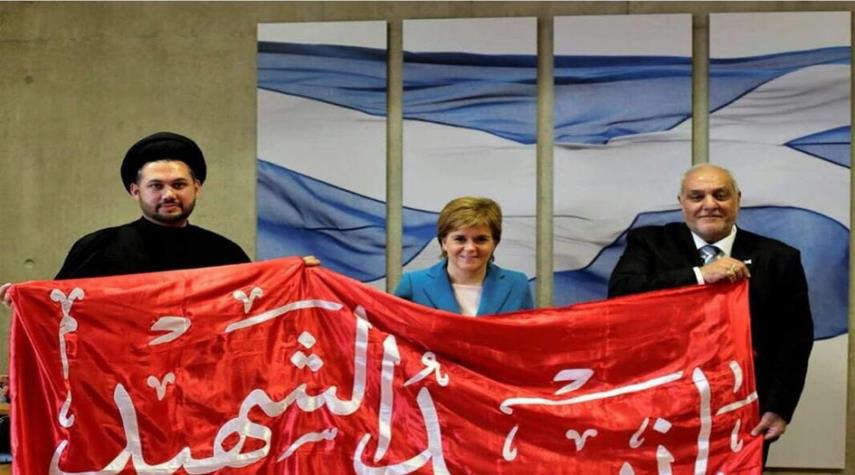 طلبت رئيسة وزراء اسكتلندا نيكولا ستيرجن من أحد علماء الدين المسلمين قراءة قصة إستشهاد الإمام الحسين (ع) فيما طلبت منه اخذ صورة تذكارية مع راية “ياحسين” وذلك خلال العام الماضي.