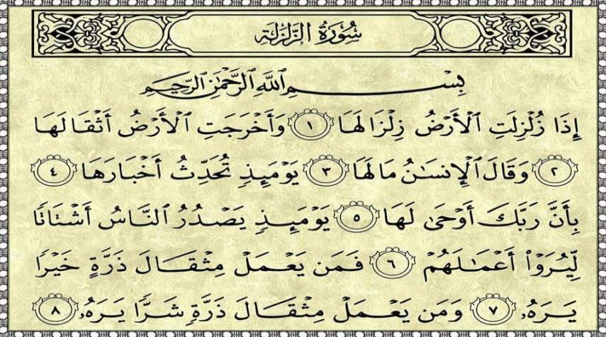 سورة الزلزلة كاملة ومكتوبة