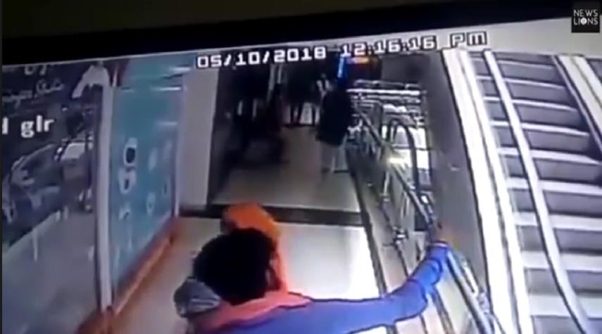 حوادث_الكوثر:لقيت طفلة في شهرها العاشر حتفها، بعدما انزلقت من ذراع والدتها، التي كانت تحاول التقاط صورة سيلفي، لتسقط من الطابق الثالث أمام المصعد، في أحد المراكز التجارية في الهند.