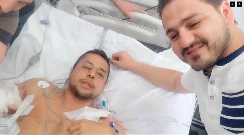 شاهد بالفيديو مراسل الكوثر يخرج من غيبوته بعد اصابة خطرة