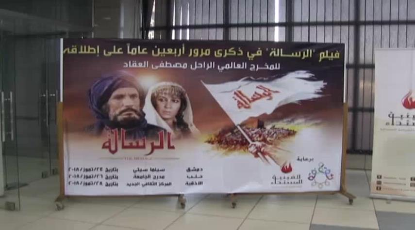 اقيم في مدينة حلب عرض سينمائي خاص لفيلم الرسالة الخالد وذلك بمناسبة مرور اربعين عاما على انتاج الفيلم وتكريما لمخرجه السوري مصطفى العقاد الذي اغتالته يد الكفر والارهاب الماسوني