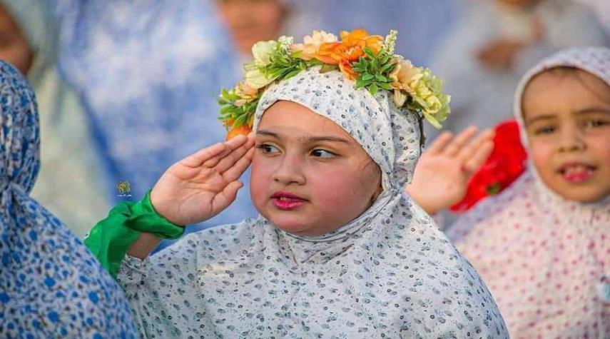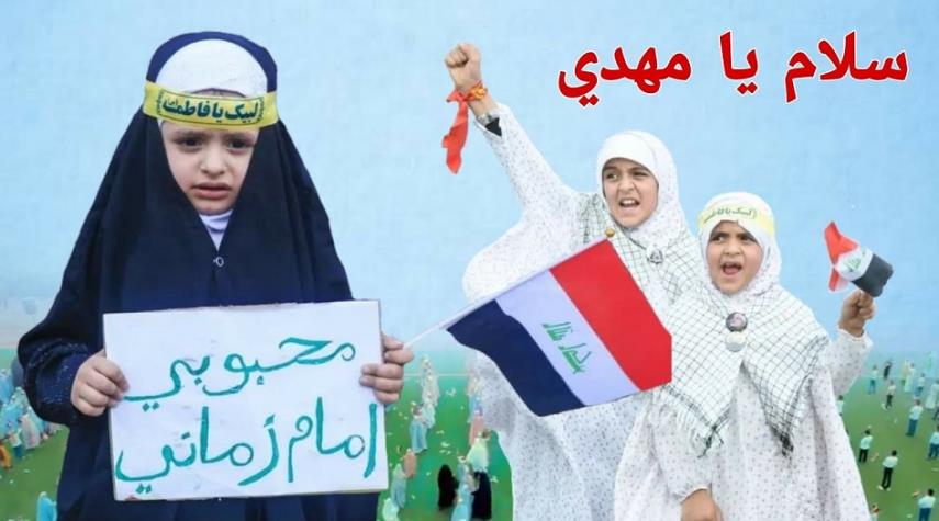 العراق - الكوثر: أنشد مجموعة من الفتيان والفتيات من محافظة ذي قار في في قضاء النصر نشيد سلام يامهدي.