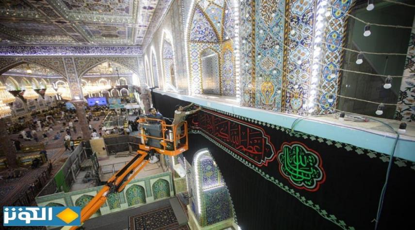 بالصور.. الحرم الحسيني يتوشح بالسواد إيذاناً بحلول محرم الحرام 1444