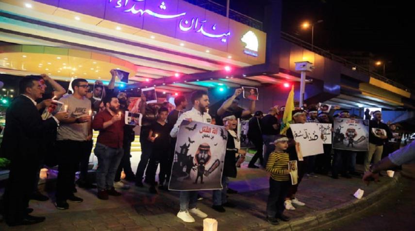 بالصور .. وقفة تضامنية بالضاحية الجنوبية لبيروت مع شهداء المجزرة السعودية