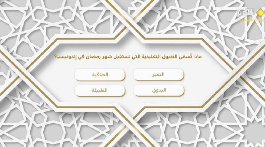 ثمة سؤال مطروح ضمن الفقرة الرمضانية المميزة "أمتنا" من اعداد قناة الكوثر الفضائية وهو " ماذا تسمى الطبول التقليدية التي تستقبل شهر رمضان في اندونيسيا؟"
