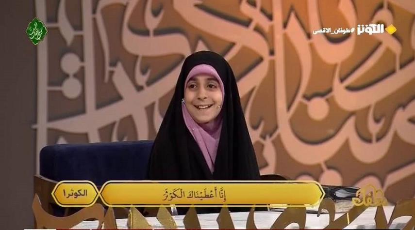الفتاة " كوثر عاصم آبادي " ذات الـ 11 عاماً والتي حفظت القرآن كاملاً خلال عام بعمر الـ 7 سنوات ، تجيب على أي سؤال شخصي يطرح عليها من قبل حكام برنامج " محفل " بإية قرآنية توحي للحكام بالجواب .