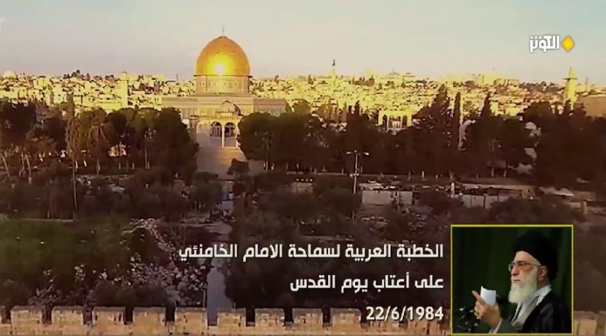 يوم القدس_الكوثر: مقطع فيديو من خطبة الإمام الخامنئي باللغة العربيّة التي ألقاها في العام ١٩٨٤ على أعتاب يوم القدس التي شدّد فيها سماحته على أنّ حلّ مسألة فلسطين على يد الحكومات الصامدة أمام الضغوط الأمريكية هو الحل الوحيد لحل مشاكل العالم الإسلامي.