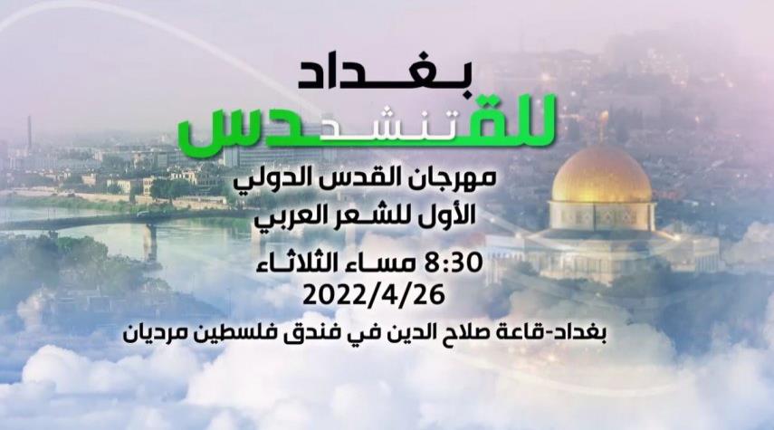العراق_الكوثر: تحت شعار "بغداد تُنشد للقدس"، تنطلق، اليوم الثلاثاء، فعاليات مهرجان "القدس" الدولي الأول للشعر العربي، والذي تنظمه مؤسسة القدس الثقافية، في العاصمة العراقية بغداد.