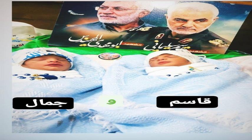 العراق_الكوثر: اختارت عائلة عراقية اسمي الشهيدين الحاج قاسم سليماني و ابو مهدي المهندس (جمال) لمولوديها التوأم.