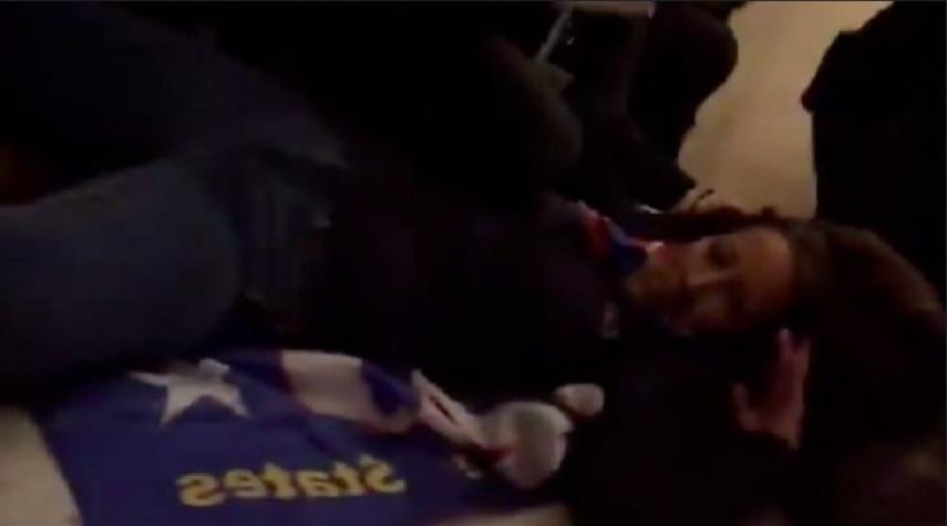 شاهد .. سحق شرطي أمريكي في مبنى الكونغرس من قبل أنصار ترامب