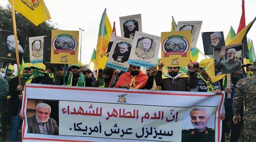 العراق - الكوثر: انطلقت في العاصمة العراقية بغداد، اليوم السبت، تظاهرة مليونية احياء للذكرى السنوية الثانية لاستشهاد قادة النصر في الجريمة الأمريكية الغادرة التي طالتهم قرب مطار بغداد الدولي.