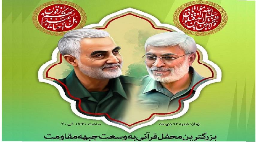 ايران-الكوثر: ستقام مجالس قرآنیة بمشارکة کبار القراء وأشهرهم علی مستوی دول محور المقامة (إیران وسوريا والعراق ولبنان) إحیاء لذکری إستشهاد الفريق الحاج قاسم سلیماني ورفیقه الشهید"أبومهدی المهندس".