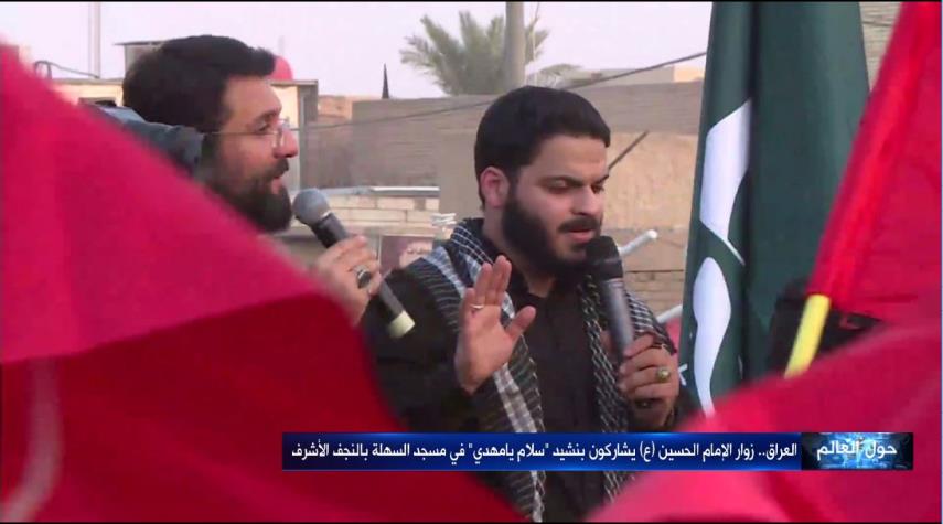 حول العالم - خاص الكوثر: ردد زوار الامام الحسين عليه الصلاة والسلام في العراق الانشودة الشهيرة "سلام يا مهدي"في مسجد السهلة بالكوفة.