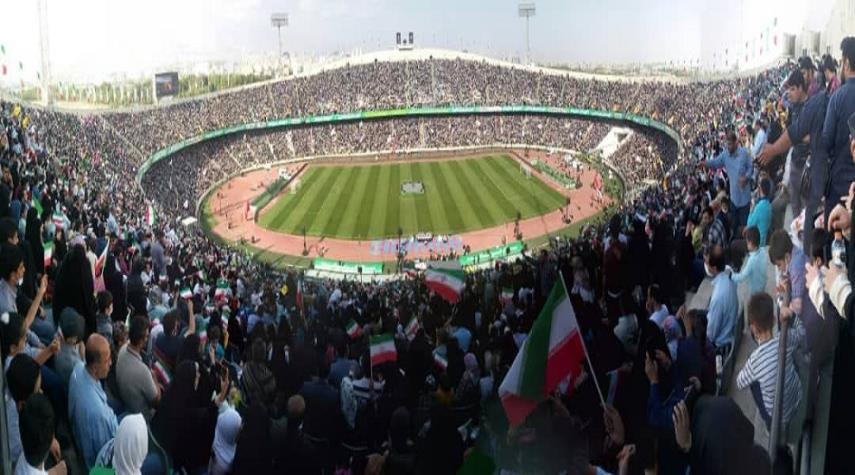 شاهد.. مئة ألف إيراني يجتمعون في ملعب آزادي لأداء نشيد "سلاماً أيها القائد"